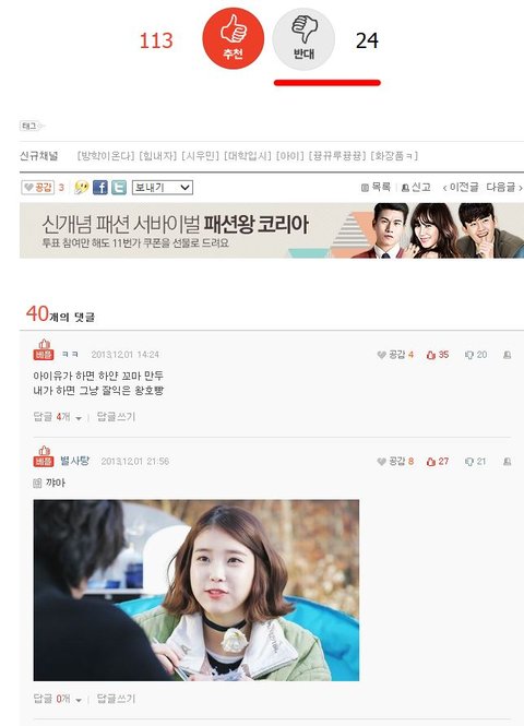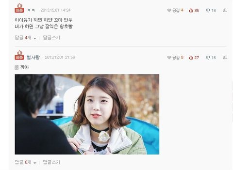 아이유 이거 진짜 귀엽다ㅠㅠ이글 처음에 봤을때 글 추천수 80 반대 18 였음.그리고 한 10분전에 봣더니 이렇게 있엇음.