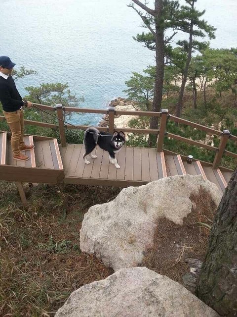 쑝~ 올라갔다 "라테 이리와~~"하니 하산하는 라테 헥헥