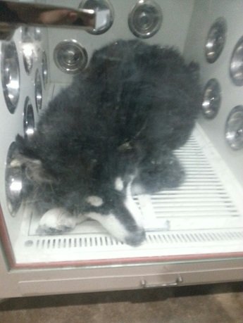 그래도 꼬리 살랑살랑흔들면서 마치 고양이인듯 다리옆으로 다가와 조용히 기대고 있습니다.