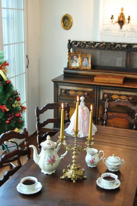 새로이 들인 앤틱스타일의 3구 촛대를 중심으로 잡고서 앤틱찻잔을 이리저리 움직이가 여러번~~