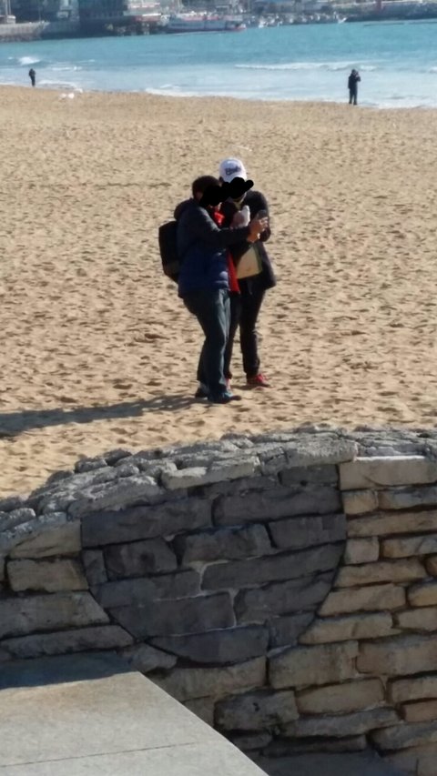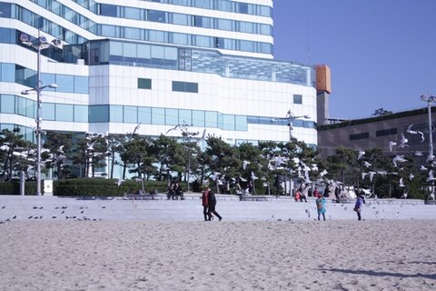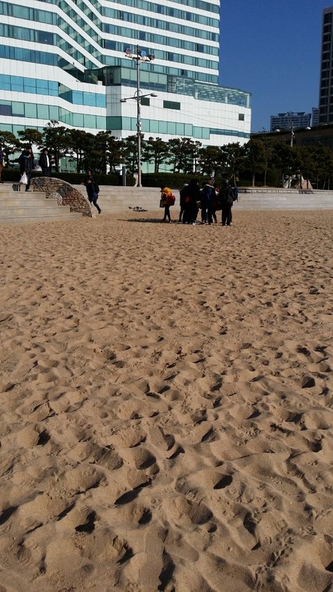 부산 해운대 숙소에서 하루 묵고 아쿠아리움을 가기 전 해운대 바다를 구경하고 있었음