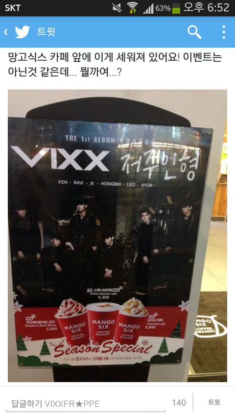 망고식스에서빅스홍보해주네요 다이렇게빅스를위하는데