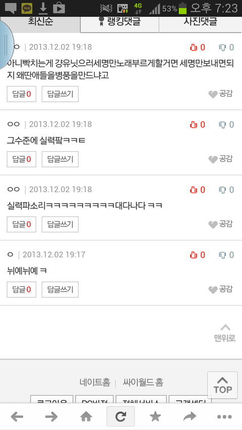 지들불리할때 메보라인 노래잘부른다 실력파다 이지랄해놓고 지네새끼안나온다니까 그수준에란다