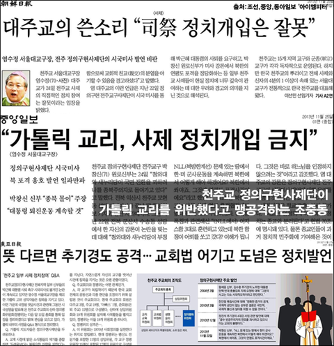 조선,중앙,동아일보는 계속해서 가톨릭 교리에서 사제의 정치개입을 금지하고 있으며, 이는 잘못된 행동이라고 주장하고 있습니다. 그런데 과연 그럴까요?