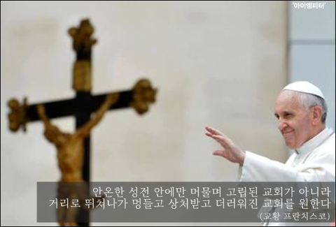프란치스코 교황은 교회가 거리로 뛰쳐나가 멍들고 상처받고 더러워야 한다는 장문의 권고문을 발표하기도 했습니다. 이 말은 오히려 현실 정치에 침묵하는 성직자가 문제라는 사실을 잘 보여주고 있습니다.