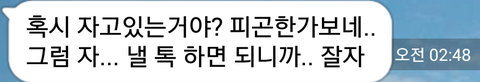 이건 제가 톡하다가 잠들었을때 보낸 톡이에요 ㅎㅎㅎㅎ