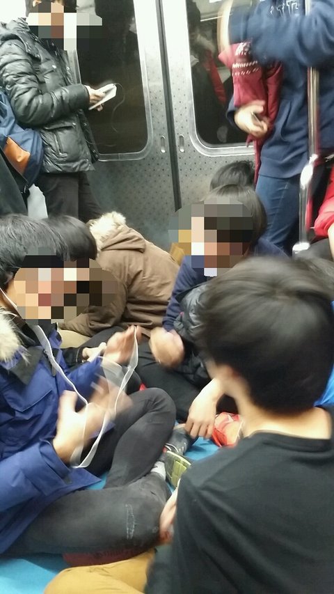 지하철에 저렇게 앉아있으면 안 된다는 구체적인 규정은 없지만
