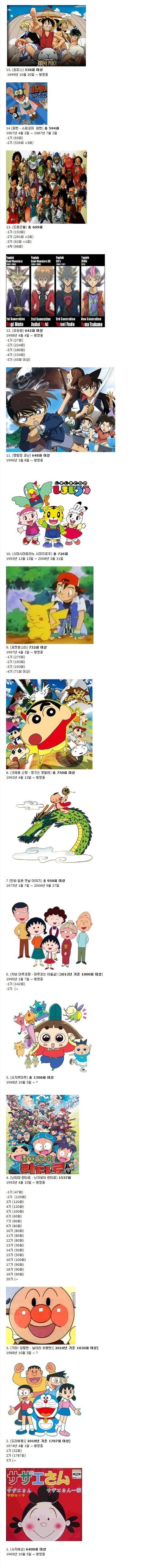 일본에서 가장 오래 방영되고 있는 애니메이션 BEST15