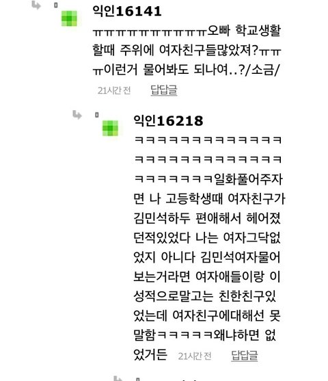 친한여자애들은 있었지만 여자친구는 없었고,1년 좋아한 여자는 있었고