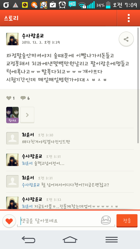 술 안마신다면서 ㅋㅋㅋㅋㅋ술마심 이글한5분뒤에 친공으로돌려놈 ㅜㅜ 요즘중딩 무서워서살겟낭