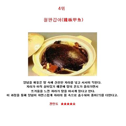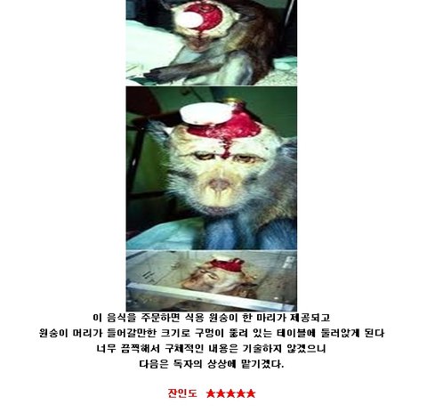 우리도 달궈진 냄비에 산대하넣고 소금뿌려 먹잖아... 달궈진 냄비에서 살려고 팔딱팔딱 뛰는 그새우들을 뚜껑으로 막은채... 즐기잖니...어느나라 종족을 벗어나 인간이란 존재는 잔인하다...