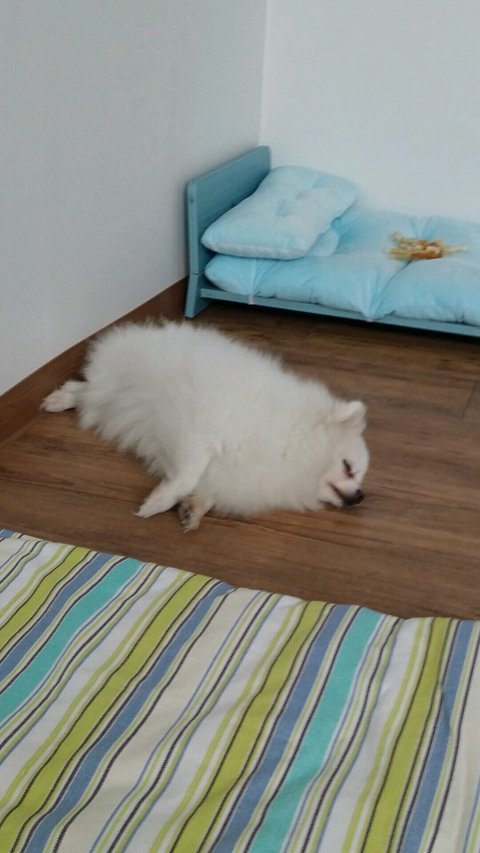 눕혀놨더니.. 코까지 골면서 참... 잘 자는 아롱이임