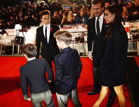 가족 단체로 정장으로 빼입고 영국의 한 행사에 온 베컴 가족