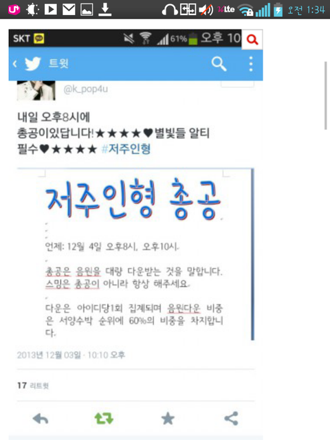 오늘총공잇다네요!!! 치킨ㅁ먹을수잇는 큰기회에요.... 별빛분들화이팅♥♥♥