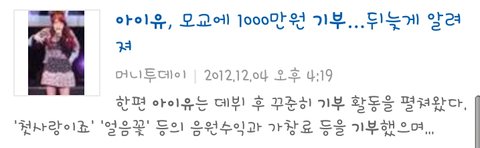 아이유처럼 기부활동에 역조공에 꾸준한팬서비스를해주는것도아니고 윤아처럼 몰래몰래 기부활동에 봉사다니는것도아닌데 수지팬들은 수지가 무슨 부처보살예수님이라도 되는것처럼 착하다고찬양함.ㅋ방송관계자평 좋은아이돌널렸는데 맨날똑같은거우려먹고 팬들쳐다보는걸로 착하다고 하는거 진짜이해안감ㅋㅋㅋㅋㅋㅋ이러면 또 열폭드립치겠지.ㅋ근데열폭이아니라 진짜이해가 안가서하는말임.게다가 과거도 좋은편아니더만;;