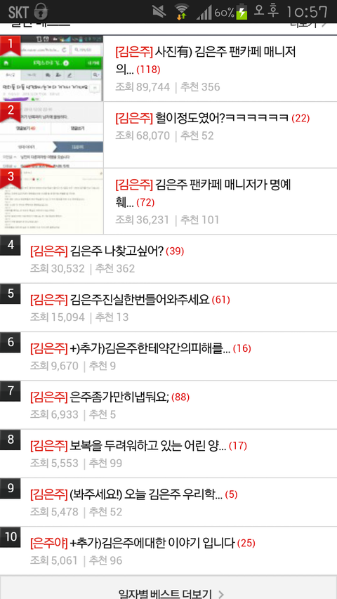 얘도감싸는애들있어 그리고 제발좀 그만해 하루이틀도 심한데 계속되봐 혹시나잘못되면 책임질것도아니자나??이거보고 양심이든 모든 너네가쓴게있으면지워