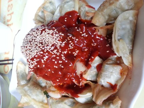 비빔만두! 집에 야채가 없너서 콩나물무침.....물에 씻어서