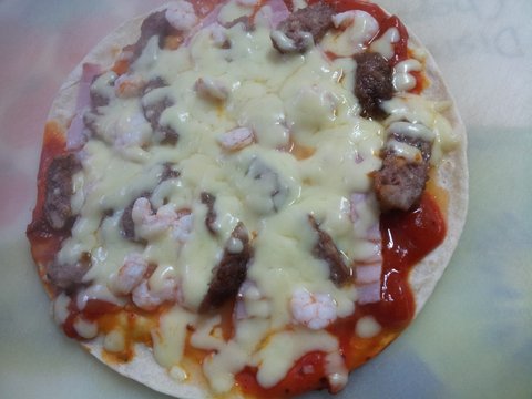또띠아피자! 떡갈비랑 칵테일새우! 치즈 듬뿍듬뿍
