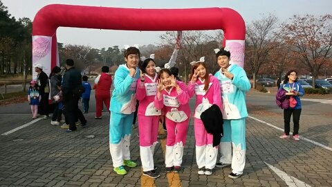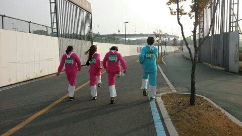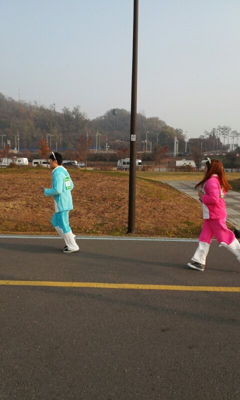 네, 저희 완주했습니다 ! 토끼옷입구 토끼처럼 '껑충껑충' 뛰어서 완주 성공!