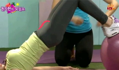 이렇게 다리 쭉피고 옆에서 보면 저렇게 튀어나와 있어요