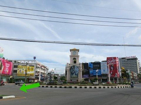 푸켓타운 시계탑 사거리 왼쪽에 있습니다.