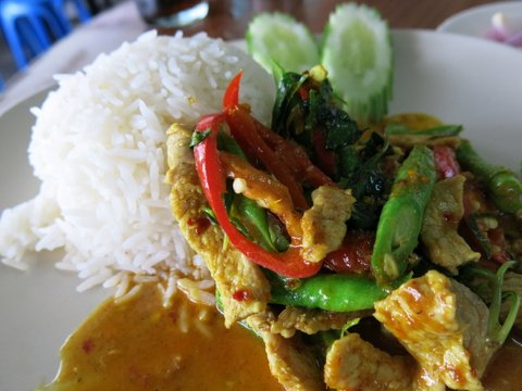 레드커리 돼지고기 볶음밥입니다.