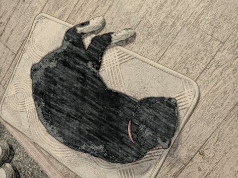 저희집에 있을 때는 현관 바로 앞에 깔린 깔개매트 위를 가장 좋아했습니다.