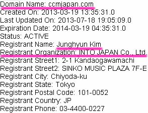 도메인 정보 조회...등록자는 "INTO JAPAN.Co Ltd"