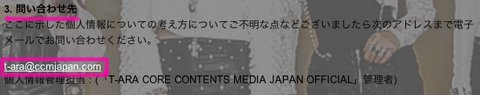 ご連絡は、サイト内のお問い合わせフォームhttp://t-ara.ccmjapan.com/contact/からお願いいたします。