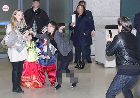 한복입은 꼬마들과 만난 아만다가 사랑스러운지 함박 웃음 지으며 사진 찍는 롱ㅋㅋ