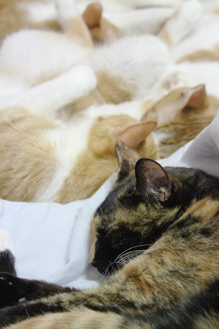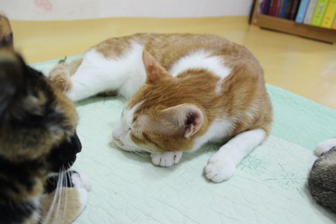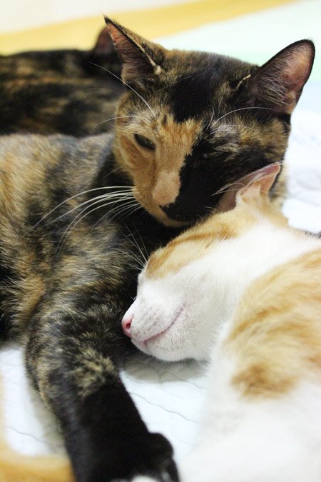 저희 집 냥이들 정말 열심히 자죠? 평소에는 루루랑 아이를 괴롭히다가도 잘 때는 잠결에 그루밍도 해주고 붙어서 자기도 합니다.
