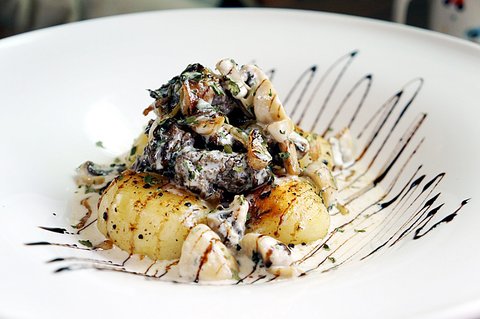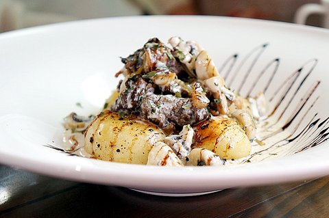발사믹 크림소스를 곁들인 소갈비살 구이와 통감자