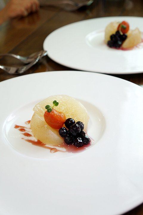 복분자 소스와 블루베리, 배 콤포트