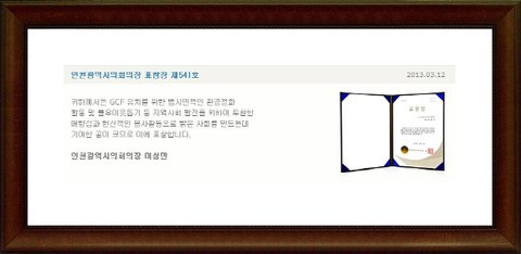 밝은 사회를 만드는데 기여한 공이 크므로 이에 표창합니다.