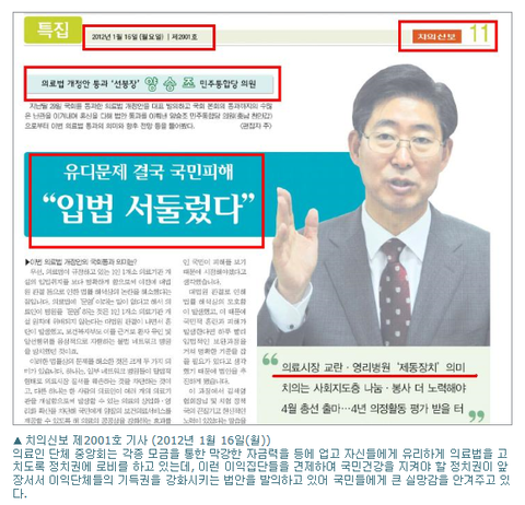 혼란한 틈을 타서 뒤로는 의료계 이익집단들의 기득권을 강화시키는 법안을
