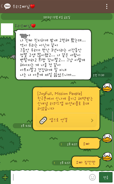 나는 아무 생각없이 오빠한테 추천하기 보냈는데....그때 오빠가 보낸 카톡을 본거임