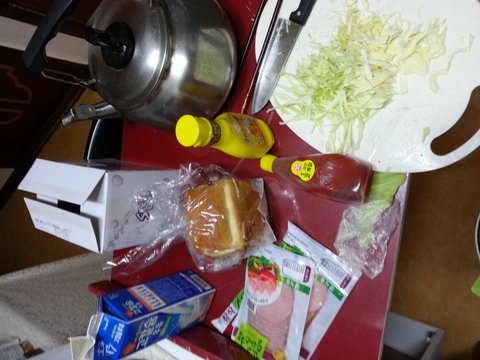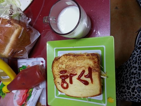 치즈에 햄두장에 양상추에 계란에 설탕케찹머스타드ㅎㅎ