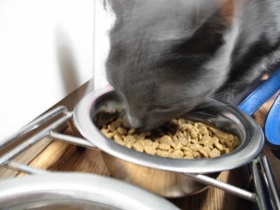 옹알옹알 거리면서 사료를 먹음, 마치 늦게 온 주제에 지금