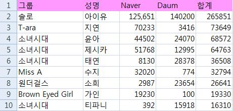 여자아이돌 개인팬카페 순위 탑9