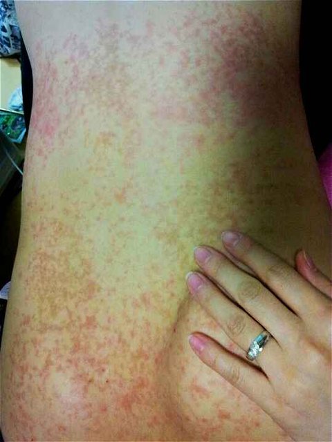 (10일동안 단식을 했고 동생 등부터 목까지 전체적으로 두드러기가 이렇게 붉게 났어요ㅜ)