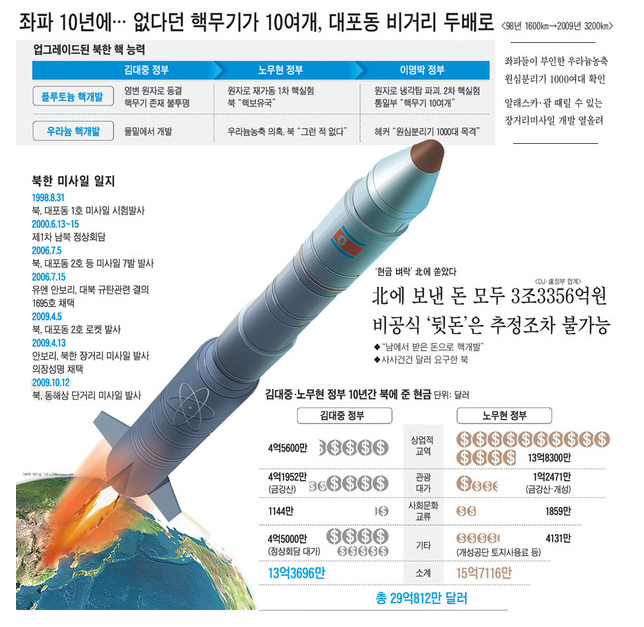 계속 퍼주니까 북한은 미사일 및 핵무장을