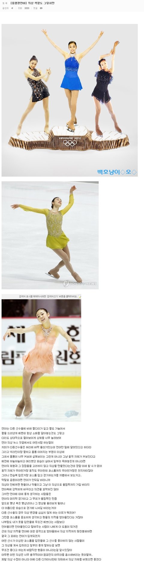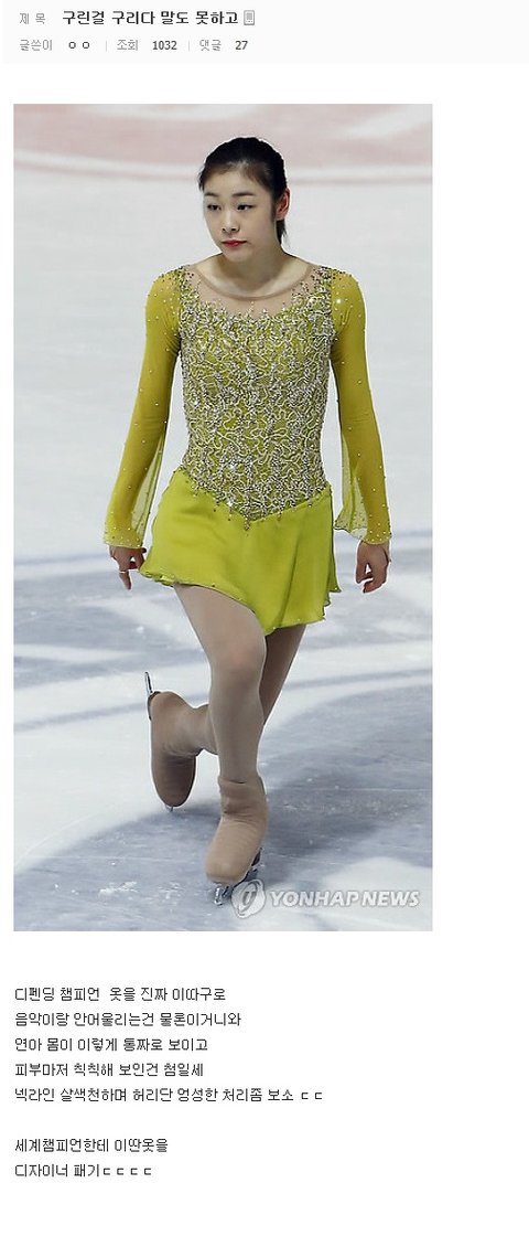 팬인척 연아의상이랑 디자이너까지욕하고 옷핑계대면서 연아 몸통커보인다고 연아까지 욕하는 악질