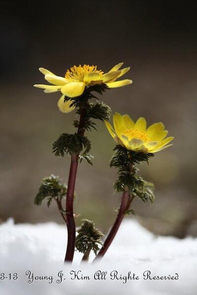 눈 속에서 피어나는 노란 꽃인데요