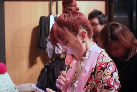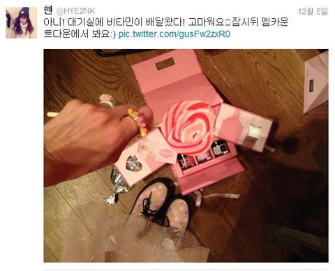 팬에게 선물받은 사탕으로 에너지 충전하는 혠니.