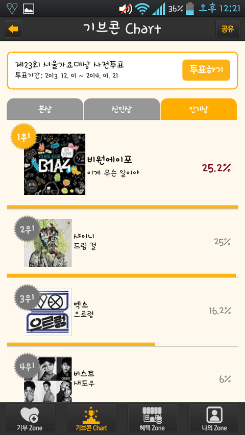 링크들어가서 베스트 남자그룹 엑소 투표(중복투표가능하다함)