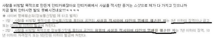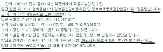 게다가 미성년 이라 성인이 명예훼손햇을경우와 청소년이 명예훼손햇을경우 받는 벌이 달라질수도 있을듯하네요 사요나라 악플러들~