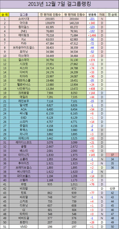 12월 7일 여자가수 팬카페 회원수