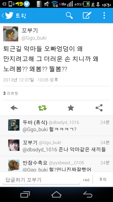 미친새끼들아님? 왜 엉덩이를만지려고해??