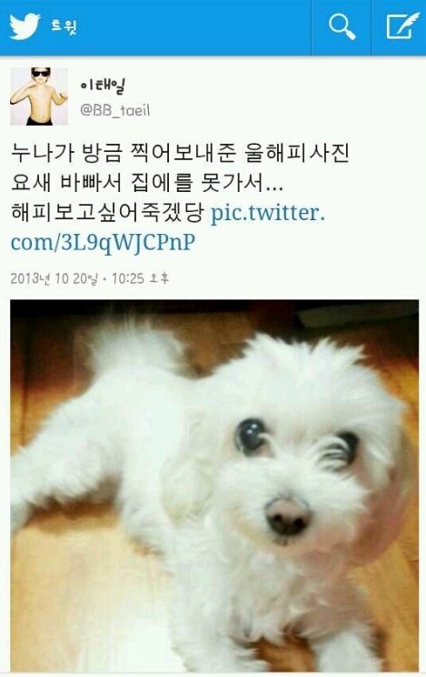 그래서 태일에게 너네집에 해피(태일이네 강아지)있잖아? 했더니..