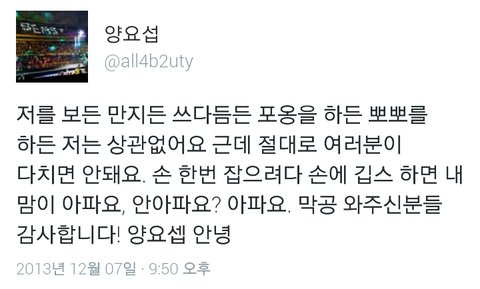 팬들만 안전하면 나는 괜찮다는 오빠의 큰 뜻을 이해해주세요....